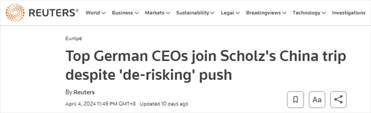 路透社分析稱,這份高管名單,凸顯了中國作為德國最大貿(mào)易伙伴的“重要份量”。