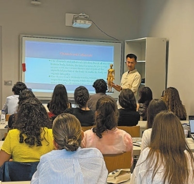 在葡萄牙科英布拉大學醫(yī)學院,教師葉曉為本科生教授《中醫(yī)藥概覽》。 張家鑫攝