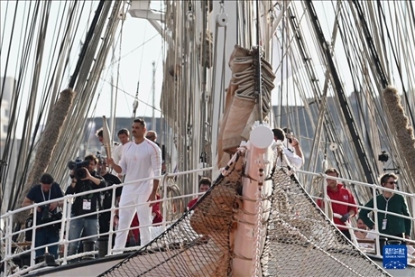 傍晚時(shí)分,伴隨著現(xiàn)場(chǎng)觀眾高唱法國(guó)國(guó)歌《馬賽曲》,“貝勒姆”號(hào)緩緩駛進(jìn)港口,著名的“法蘭西巡邏兵”飛行表演隊(duì)從港口上空呼嘯而過,先后展示了奧運(yùn)五環(huán)與法國(guó)國(guó)旗的圖案。