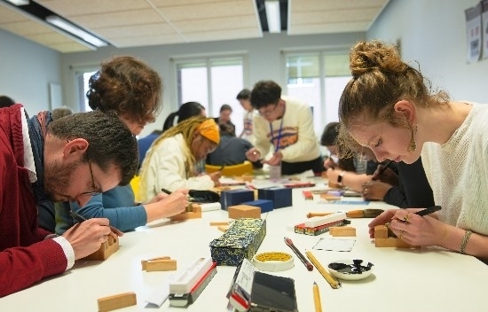 5月2日至5月6日,華東師大“漢字走進(jìn)法國(guó)校園”工作坊活動(dòng)在新里昂中法大學(xué)、熱納斯鎮(zhèn)路易·萊普林斯—林蓋中學(xué)、里昂二大與里昂國(guó)際學(xué)校相繼舉行。當(dāng)?shù)卮笾行W(xué)生和市民參觀了由華東師大美術(shù)學(xué)院書(shū)法篆刻專業(yè)4位老師和43位在校研究生創(chuàng)作的書(shū)法篆刻作品,首次動(dòng)手體驗(yàn)了篆刻的樂(lè)趣。