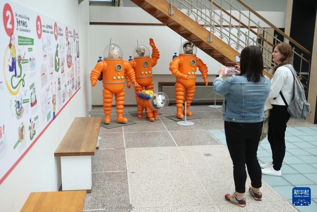 5月18日,人們在比利時布魯塞爾的漫畫博物館參觀拍照。
