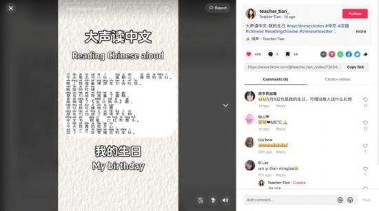 來自老撾的楊世群、菲律賓的黃玉潔、布隆迪的田曉慧和墨西哥的楊衍輝等老師,還分享了各種學習中文的有趣方法,例如情景演繹、唱歌學中文、跟讀練習,獲得了網(wǎng)友們的一致好評。