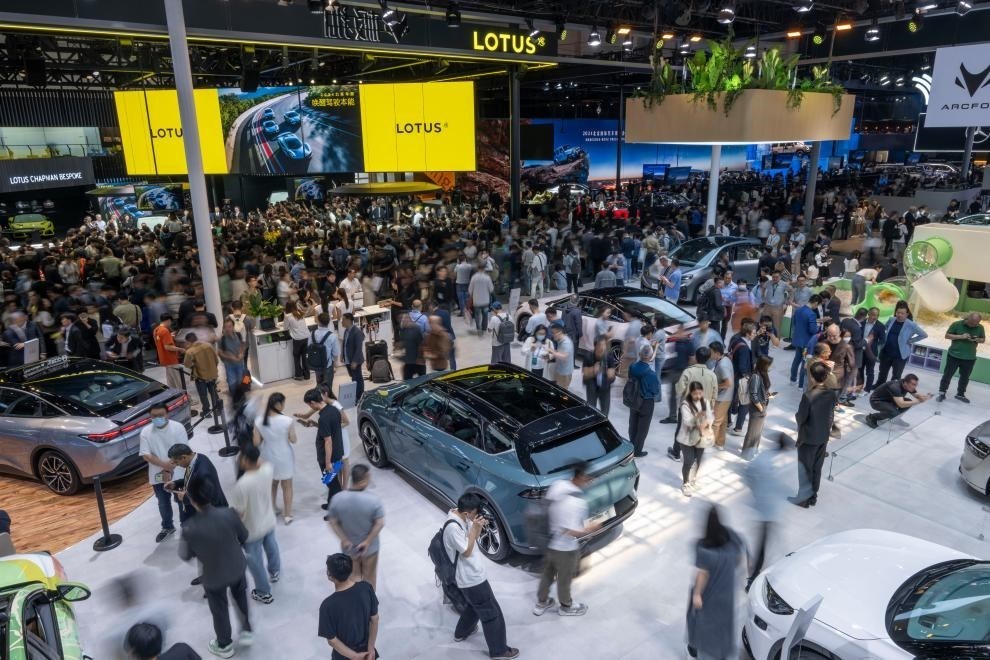 4月25日,人們?cè)?024(第十八屆)北京國(guó)際汽車(chē)展覽會(huì)現(xiàn)場(chǎng)參觀。新華社記者才揚(yáng)攝
