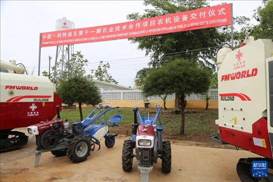 5月31日,中科農(nóng)業(yè)設(shè)備和稻種交接儀式在格格杜墾區(qū)舉行。中國援科特迪瓦農(nóng)業(yè)技術(shù)合作組組長郭長友告訴新華社記者:“我們這次為科特迪瓦的水稻種植戶帶來了聯(lián)合收割機(jī)、水稻精選機(jī)、小型碾米機(jī)、東方紅拖拉機(jī)等先進(jìn)農(nóng)業(yè)設(shè)備,還有10噸稻種,希望助力科特迪瓦水稻行業(yè)發(fā)展,幫助科特迪瓦早日實現(xiàn)水稻自給自足?!?/p>