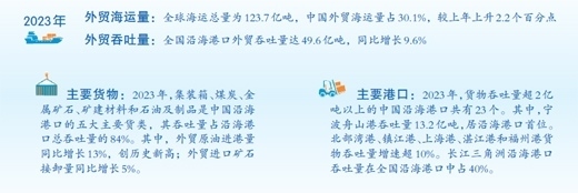 ——貨物吞吐量超2億噸以上的中國沿海港口共有23個,沿海港口航道已實現(xiàn)“一圖覆蓋”,沿海水上安全通信“一網(wǎng)貫通”
