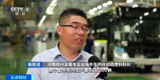河南鄭州某客車企業(yè)海外生產(chǎn)計劃調(diào)度科科長 施前進:整個上半年共生產(chǎn)客車21260輛,同比增長34.86%;其中海外客車出口6500輛,同比增長58%。后半年訂單還是很飽和的,我們產(chǎn)線一直處于滿負荷生產(chǎn)狀態(tài),一直持續(xù)到年底。