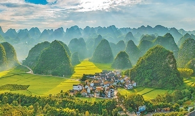 貴州興義世界地質公園內(nèi)萬峰林景區(qū)錐狀峰林。張 霆攝