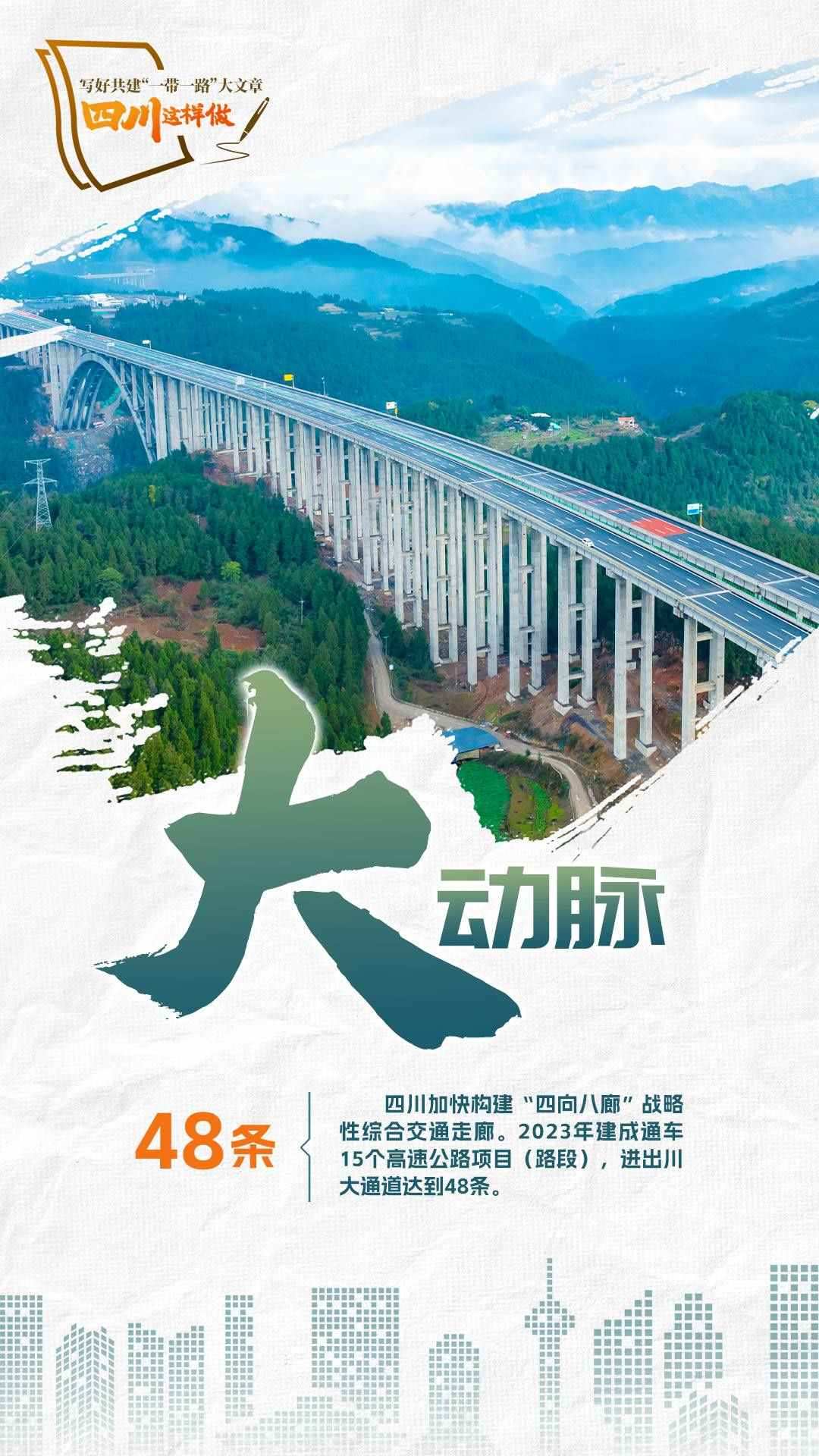 2023年,共建“一帶一路”走過第一個蓬勃十年,積極奔向更富活力的第二個“金色十年”。為推動共建“一帶一路”更高質量、更高水平發(fā)展,宣布中國支持高質量共建“一帶一路”的八項行動,包括構建“一帶一路”立體互聯(lián)互通網(wǎng)絡、支持建設開放型世界經濟、開展務實合作、促進綠色發(fā)展、推動科技創(chuàng)新、支持民間交往、建設廉潔之路、完善“一帶一路”國際合作機制。2024年,我們將目光聚焦四川,作為內陸開放的前沿陣地、西部大開發(fā)的戰(zhàn)略依托,看看第二個十年,四川如何寫好高質量共建“一帶一路”大文章。