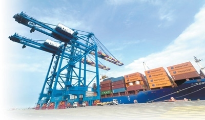 特馬新集裝箱碼頭。本報(bào)記者 強(qiáng) 薇攝