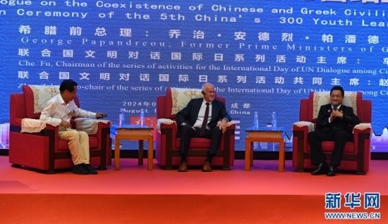 聯(lián)合國(guó)文明對(duì)話國(guó)際日系列活動(dòng)“中希文明交流互鑒對(duì)話”近日在四川省成都市“中華雷鋒志愿者小鎮(zhèn)”舉行。希臘前總理喬治·帕潘德里歐,聯(lián)合國(guó)藝術(shù)基金會(huì)主席、“2024中華雷鋒志愿者特別行動(dòng)計(jì)劃”負(fù)責(zé)人車夫出席并開(kāi)展對(duì)話。
