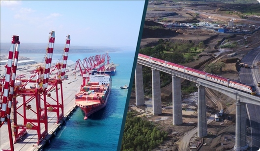 吉布提港口(左)和聯(lián)通東非的蒙內(nèi)鐵路(右)
