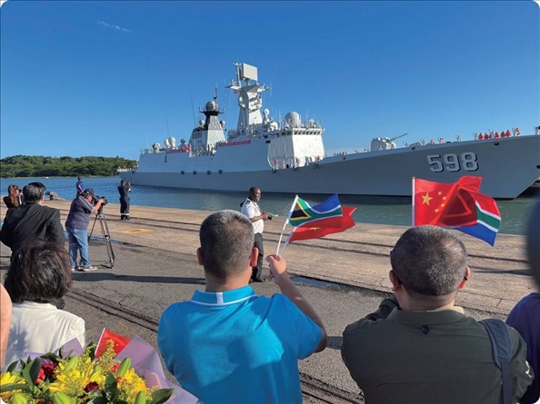 聯(lián)合演習(xí)開始前一天,中國海軍日照艦抵達(dá)南非理查茲灣港口,受到歡迎