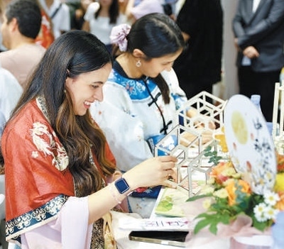 聯(lián)合采訪團(tuán)成員在谷雨公司體驗(yàn)中華傳統(tǒng)文化。本報(bào)記者 蔣雨師攝