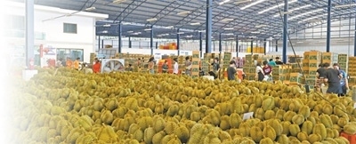 在位于泰國(guó)尖竹汶府的優(yōu)果東明水果廠,經(jīng)過(guò)分揀和清潔處理的榴蓮按品級(jí)分類整齊堆放、等待裝箱。本報(bào)記者 白元琪攝