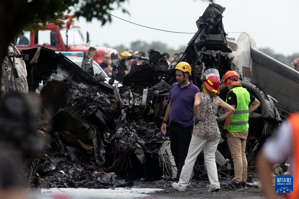 12月18日,在阿根廷東部布宜諾斯艾利斯省的圣費(fèi)爾南多機(jī)場附近,安全人員在飛機(jī)失事現(xiàn)場調(diào)查。