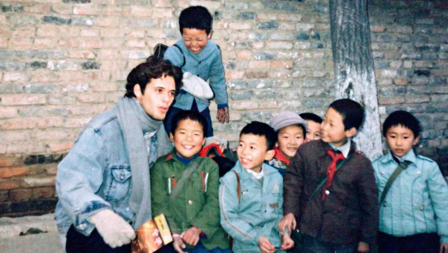 上世紀(jì)80年代,林登(左一)第一次來中國,與中國孩子們在一起。