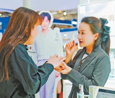 第七屆進(jìn)博會期間,參觀者在花王展臺體驗相關(guān)產(chǎn)品。