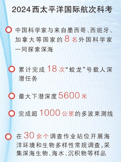 2024西太平洋國際航次科考由自然資源部中國大洋事務(wù)管理局統(tǒng)籌國家深海基地管理中心組織實(shí)施,是“數(shù)字化深海典型生境”大科學(xué)計劃下,首個在公海區(qū)域開展的聯(lián)合科考,也是首次有外國科學(xué)家搭乘“蛟龍”號開展深??瓶肌?/p>