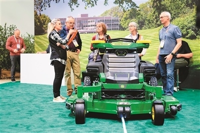 圖為在美國拉斯維加斯消費(fèi)電子展上,人們觀看一款農(nóng)用車輛。