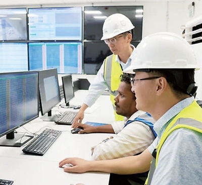 工作人員在阿爾舒巴赫光伏電站項(xiàng)目中央控制室查看設(shè)備運(yùn)行情況。