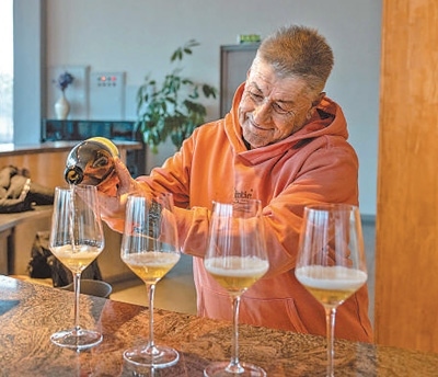“除了葡萄酒外,我們還不斷拓展釀酒種類。這兩款酒是由我們員工自家種植的大米和蘋果釀制的?!奔贸鰞善烤谱院赖亟榻B道,“它們?cè)谑袌?chǎng)上很受歡迎,農(nóng)產(chǎn)品附加值提高了,員工們的收入更多了,真正實(shí)現(xiàn)了產(chǎn)業(yè)與生活的緊密結(jié)合?!?/p>