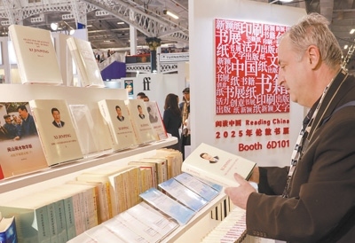 走進(jìn)奧林匹亞展覽中心主展館,總面積618平方米的中國(guó)展區(qū)內(nèi),紅色標(biāo)識(shí)格外醒目。來(lái)自中國(guó)50多家出版發(fā)行單位的圖書(shū)擺放錯(cuò)落有致,吸引了來(lái)自世界各地的出版界專(zhuān)業(yè)人士和廣大讀者駐足翻閱。在中國(guó)展區(qū)中心位置,擺放著《習(xí)近平著作選讀》第一卷、第二卷,《習(xí)近平談治國(guó)理政》第一至四卷,《擺脫貧困》等著作。