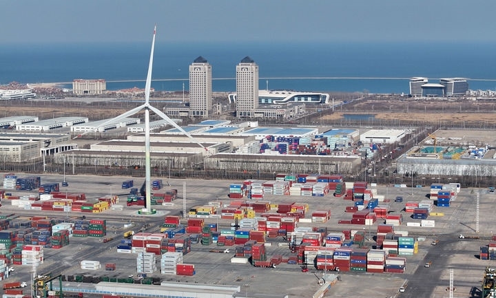 這是天津自貿(mào)試驗區(qū)東疆片區(qū)一景(2024年3月20日攝,無人機照片)。新華社記者 趙子碩 攝