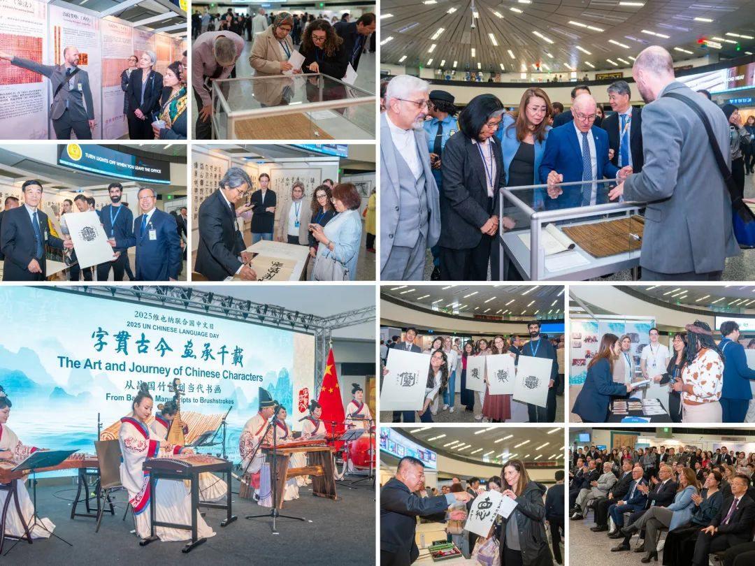 來賓懷著濃厚興趣參觀戰(zhàn)國竹簡、中國傳統(tǒng)繪畫和書法作品展覽,深切感受中國文字、文化、文明的發(fā)展傳承、美學意境和時代意義。蘇士澍、徐里、包俊宜、羅楊等書畫家現(xiàn)場揮毫潑墨,身著漢服的藝術家演奏《春江花月夜》《滄海一聲笑》等傳統(tǒng)名曲,獲得觀眾陣陣熱烈掌聲。來賓們表示,聯(lián)合國中文日選在中國傳統(tǒng)節(jié)氣“谷雨”,正像中國在聯(lián)合國發(fā)揮的重要作用,帶來春天般的希望和動力。