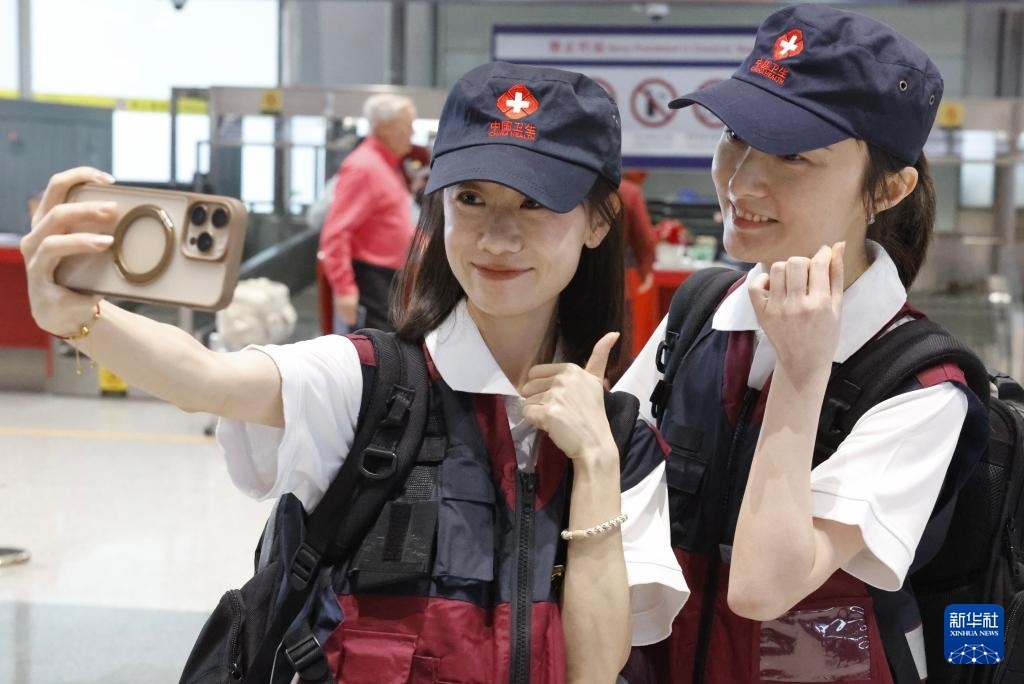 4月19日,12名從北京出發(fā)的隊(duì)員從北京首都機(jī)場(chǎng)離京。新華社記者 張玉薇 攝
