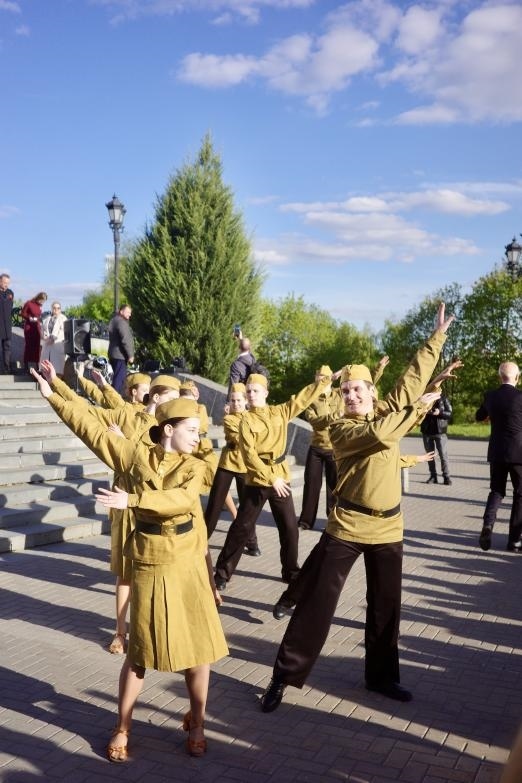 莫斯科勝利廣場,是1995年為了紀念反法西斯戰(zhàn)爭勝利50周年而建成。當?shù)貢r間5月6日,勝利廣場上,當?shù)啬贻p人穿上二戰(zhàn)時蘇聯(lián)軍隊的制服,在音樂聲中翩翩起舞,吸引了很多人駐足。劉少華 攝