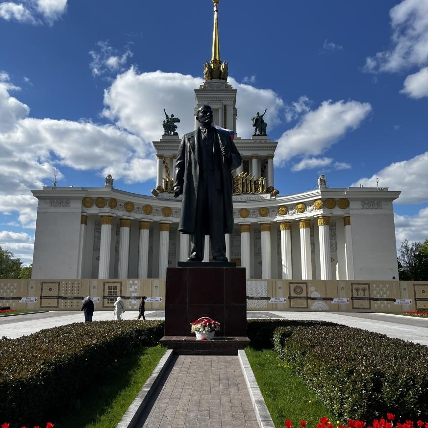當?shù)貢r間5月6日,位于俄羅斯首都莫斯科全俄展覽中心前的列寧雕像。姜忠奇 攝