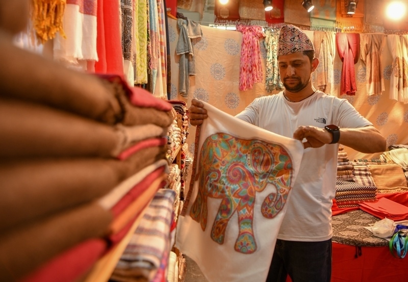 2025年6月18日,在第9屆中國(guó)—南亞博覽會(huì),來自尼泊爾的參展商整理即將展出的商品。新華社發(fā)(彭奕凱 攝)