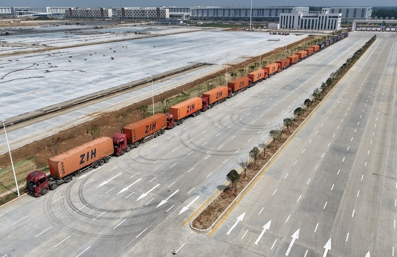 6月28日,一班列車(chē)在鄭州國(guó)際陸港核心功能區(qū)啟動(dòng)運(yùn)行。
