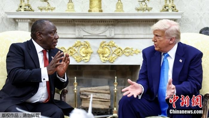 2025年5月21日,美國總統(tǒng)特朗普在白宮橢圓形辦公室會見南非總統(tǒng)拉馬福薩。