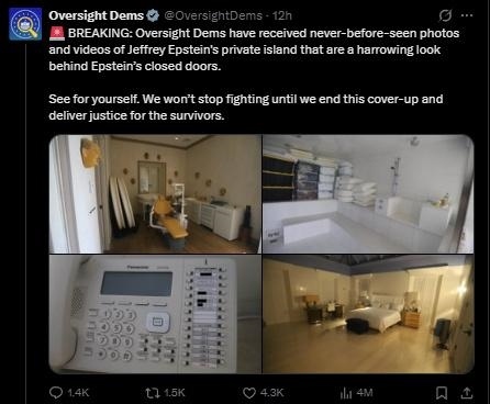 據(jù)報(bào)道,根據(jù)貼文聲明,視頻拍攝了愛(ài)潑斯坦私人島嶼住宅相關(guān)景象。
