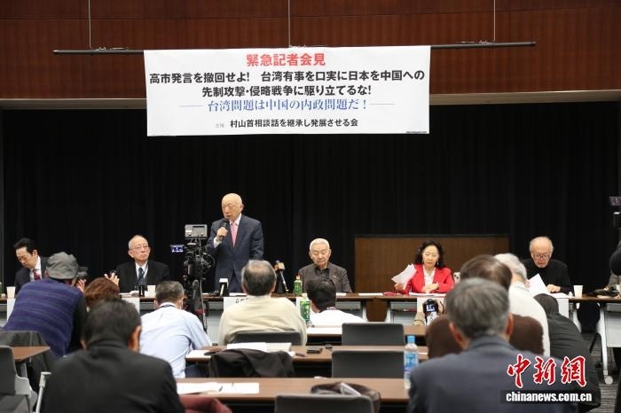 中新社東京12月8日電 (記者 朱晨曦)日本多名學者及市民團體代表8日在位于東京的日本參議院議員會館舉行記者會,要求日本首相高市早苗撤回涉臺錯誤言論。