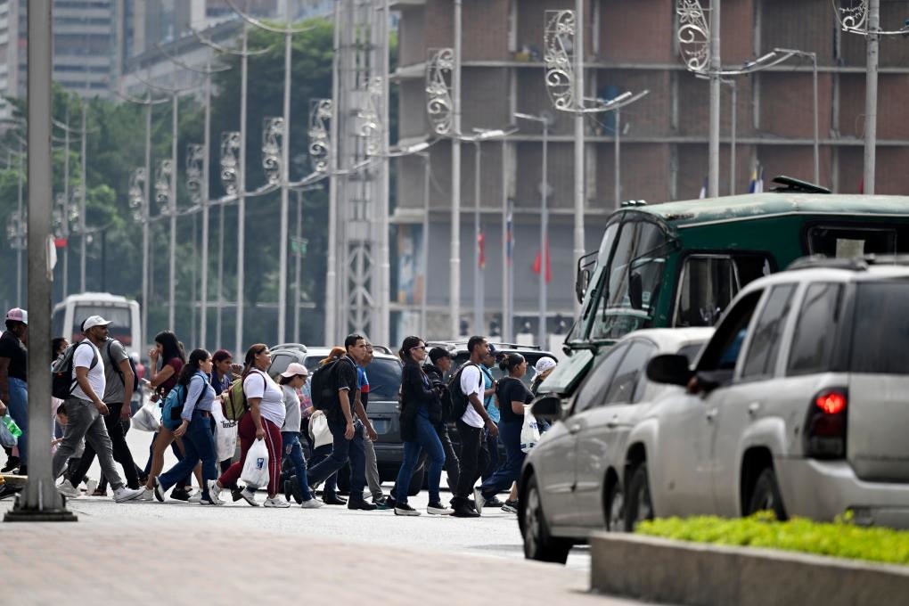 12月2日,在委內瑞拉首都加拉加斯,行人在早高峰時段穿過玻利瓦爾大街。新華社記者李木子攝