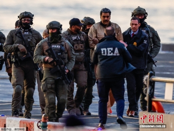 當(dāng)?shù)貢r(shí)間1月5日,委內(nèi)瑞拉總統(tǒng)馬杜羅抵達(dá)美國紐約聯(lián)邦法庭,將在這里首次出庭受審。圖為馬杜羅在前往法院途中。