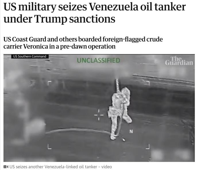 中新網(wǎng)1月16日電 據(jù)英國《衛(wèi)報》報道,當(dāng)?shù)貢r間15日,美軍方面宣布,美國在加勒比海扣押了又一艘油輪。