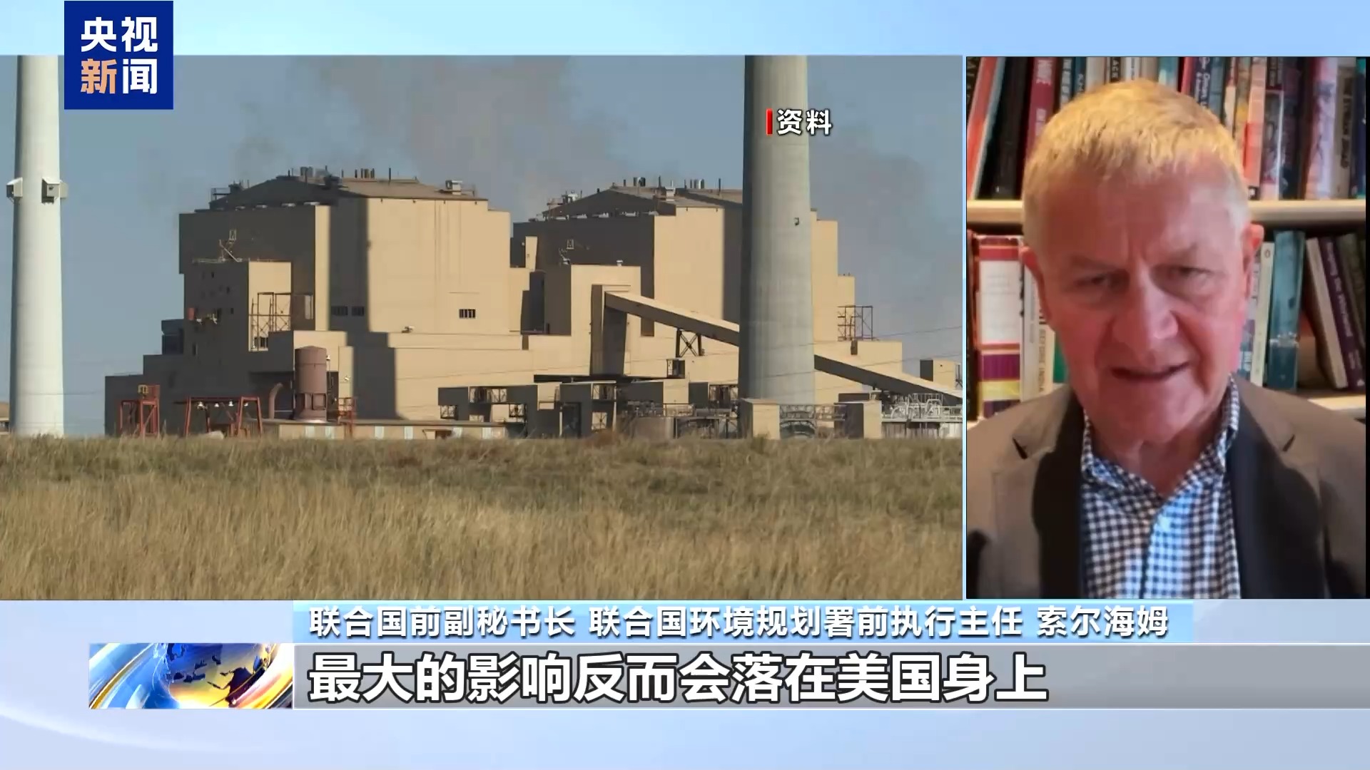 聯(lián)合國前副秘書長(zhǎng) 聯(lián)合國環(huán)境規(guī)劃署前執(zhí)行主任 索爾海姆:我認(rèn)為,諷刺的是最大的影響反而會(huì)落在美國身上,因?yàn)槊绹F(xiàn)在正在削減在太陽能、風(fēng)能和電動(dòng)汽車方面的投入。