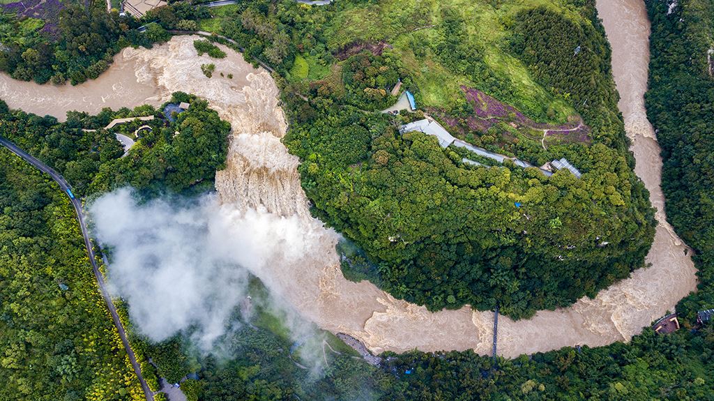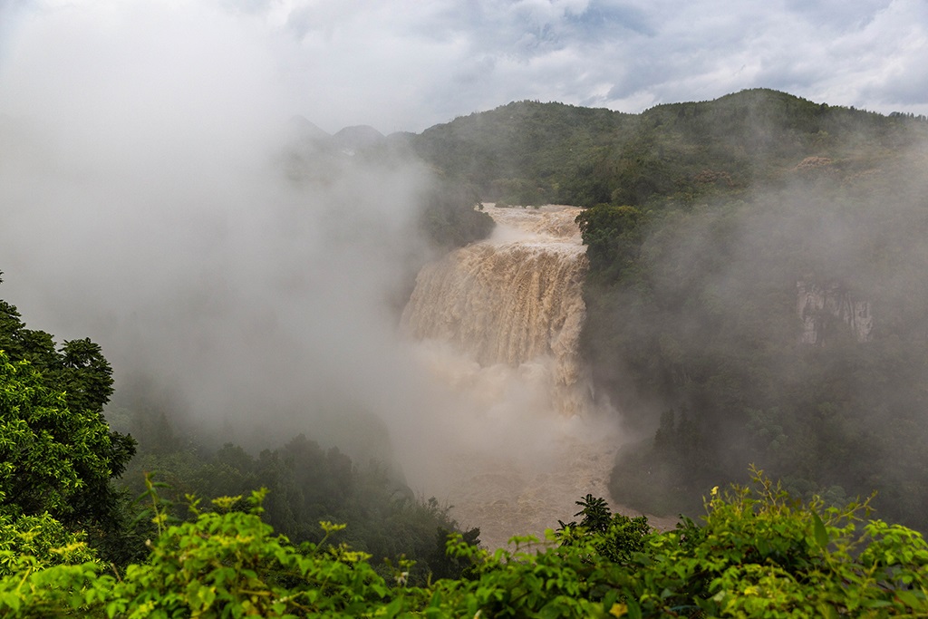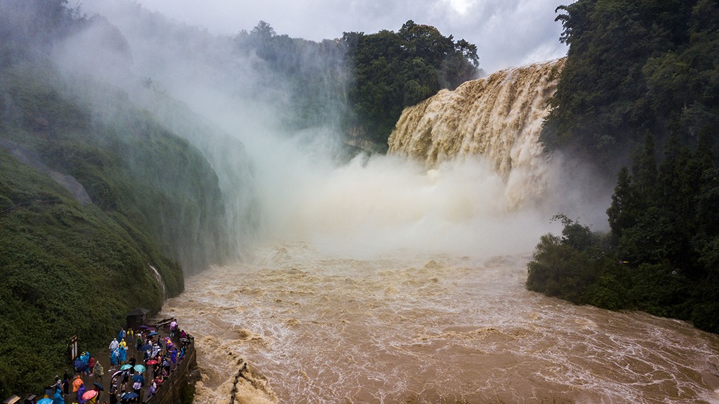 受強(qiáng)降雨影響,貴州黃果樹瀑布迎來2020年入汛以來最大水量,黃果樹瀑布水勢磅礴。陳熙/攝