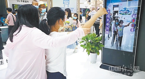 在2020服貿會5G通信服務專題展區(qū),觀眾正體驗“AR試衣鏡”。經濟日報-中國經濟網記者崔國強攝