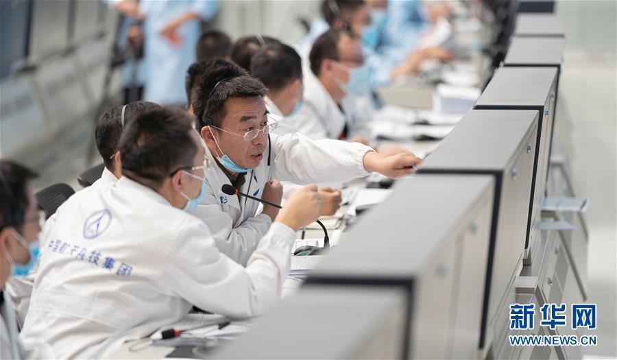 10月9日,在北京航天飛行控制中心,航天科技人員在現(xiàn)場(chǎng)工作。新華社記者才揚(yáng)攝