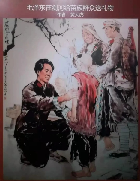 “當(dāng)我等行經(jīng)劍河縣附近之某村落時(shí),見路邊有一老婦與一童子,身穿單衣,倒于路邊,氣息尚存……正詢問間,赤軍領(lǐng)袖毛澤東至,告以老婦所言。當(dāng)時(shí)毛即時(shí)從身上脫下毛線衣一件及行李中取出被單一條,授予老婦,并命人給以白米一斗。老婦則連連道謝含笑而去。”