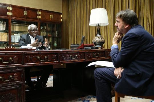 2016年,時任塞拉利昂總統(tǒng)科羅馬接受穆迪采訪。(攝影:王壯飛)