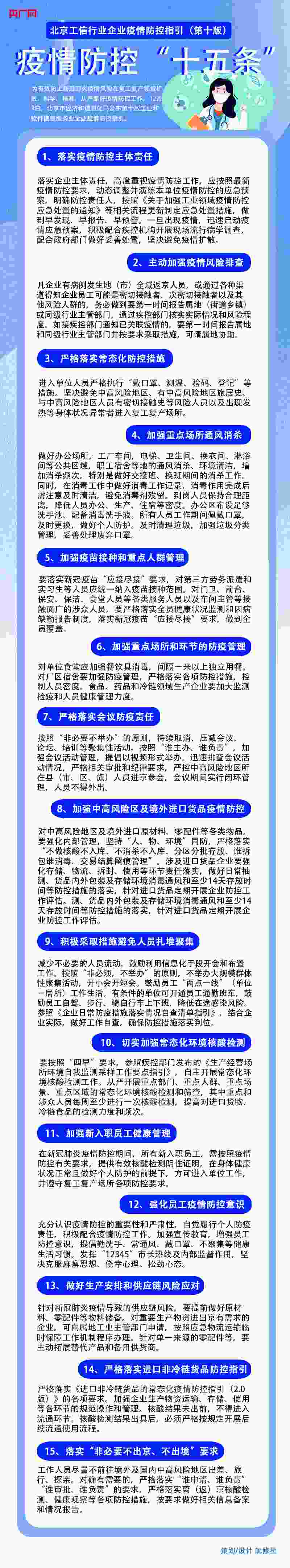 央廣網(wǎng)北京12月5日消息 為有效防止新冠肺炎疫情風(fēng)險(xiǎn)在復(fù)工復(fù)產(chǎn)領(lǐng)域擴(kuò)散,科學(xué)、精準(zhǔn)、從嚴(yán)抓好疫情防控工作,12月3日,北京市經(jīng)濟(jì)和信息化局公布第十版工業(yè)和軟件信息服務(wù)業(yè)企業(yè)疫情防控指引。