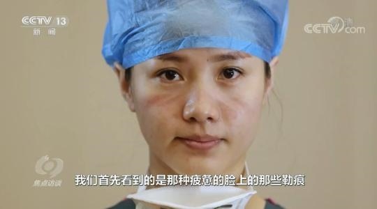 中國文聯(lián)第十一次全國代表大會(huì)代表、中國攝影家協(xié)會(huì)主席李舸說:“摘下口罩那一下,我們首先看到的是疲憊的臉上的那些勒痕,甚至有很多都是破的傷口,但是他們用很簡單的方法處理,那種堅(jiān)毅的眼神讓我們感觸特別深?!?/p>