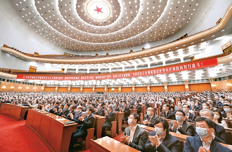 2021年5月28日,中國(guó)科學(xué)院第二十次院士大會(huì)、中國(guó)工程院第十五次院士大會(huì)和中國(guó)科學(xué)技術(shù)協(xié)會(huì)第十次全國(guó)代表大會(huì)在北京人民大會(huì)堂隆重召開(kāi)。圖為大會(huì)現(xiàn)場(chǎng)。新華社記者李響/攝