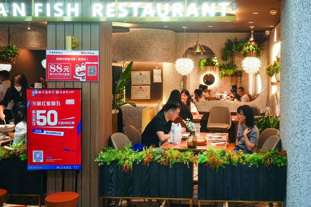 2022年5月28日,市民在長春市一家餐廳內用餐。自這一天零時起,長春市各類生產(chǎn)經(jīng)營主體全面恢復營業(yè)。新華社記者許暢攝