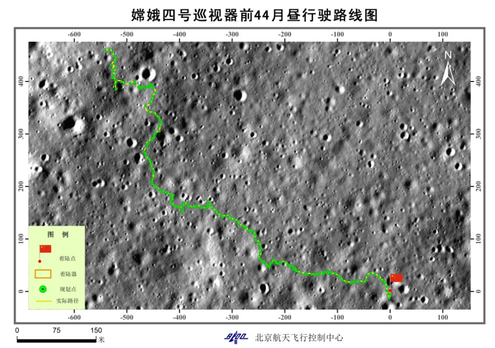 嫦娥四號(hào)任務(wù)“玉兔二號(hào)”月球車和著陸器分別于7月5日19時(shí)14分和7月6日6時(shí)整完成休眠設(shè)置,完成第44月晝工作,進(jìn)入第44月夜休眠。月球車在月球背面累計(jì)行駛里程1239.88米。